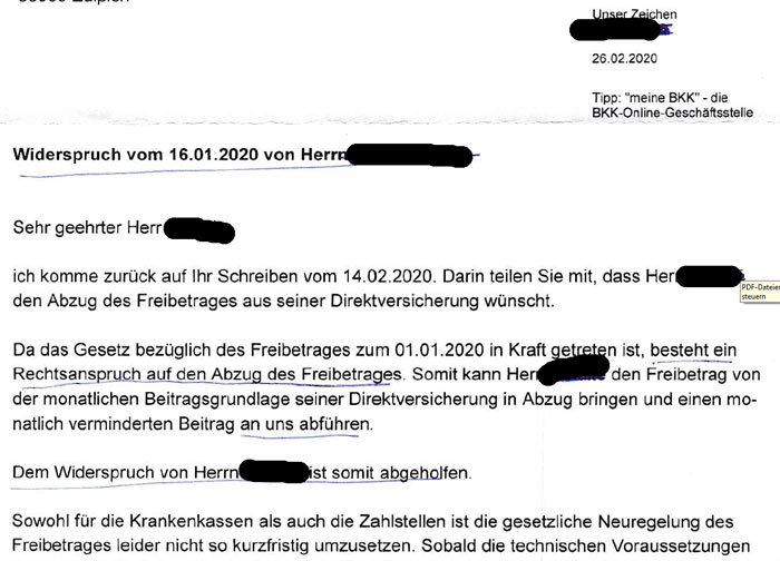 Klaus Gempel Auch die BKK Faber Castell lässt keine Beitragskürzung wegen dem Freibetrag zu driht mir mit Mahngebühr nach ihren Aussagen schafft sie es nicht mal bis ende 2020 den Freibetrag zu berücksichtigen willkür lässt grüßen