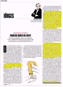 Wir waren schon einmal prominenter in den Medien. Darauf verweist die DVG-Regionalgruppe Pfalz, Raum KA/RA und Saarland. Damals schrieb Hans-Ulrich Jörges in seiner Kolumne im Magazin Stern am 17. Juli 2017: „Raubzug durch die Rente“ in Beziehung auf die Doppelverbeitragung.