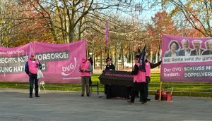 Es geht aber auch insgesamt um ein gerechtes Rentensystem für alle und um eine solide und gerechte Altersversorgung und Altersvorsorgung. Passanten an der Mahnwache fragen danach, bekommen vom DVG Auskunft und sind schwer beeindruckt vom unermüdlichen Einsatz der DVG-Mitglieder – auch heute wieder. Die Mahnwache vor dem Kanzleramt findet heute noch bis ca. 16.00 Uhr statt.