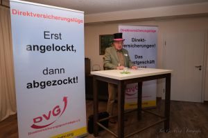 Der DVG wird weiter Beratung anbieten und aufklären, insbesondere die jungen Leute, die jungen Arbeitnehmerinnen und Arbeitnehmer, die nach dem neuen Altersvorsorgegesetz mit 15 % Arbeitgeberzuschuß und Sozialabgabenbefreiung angelockt und fahrlässig in eine Verlustfalle geführt werden. Niemand klärt sie darüber auf, daß sie später doppelte Krankenkassenbeiträge zahlen müssen und weniger Rentenpunkte haben werden. In vielen Fällen bekommen sie trotz Zuschuß wegen der hohen ABgaben nicht einmal ihren eingezahlten Nettobetrag wieder raus. Das sei fahrlässig herbeigeführter politischer Betrug.