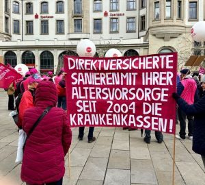 Rückblende: Die Kundgebung des DVG – Verein der Direktversicherungsgeschädigten e.V. in Erfurt mit großer Resonanz vor Ort und darüber hinaus. Einer der Slogans: „Direktversicherte sanieren mit ihrer Altersvorsorge seit 2004 die Krankenkassen!“
