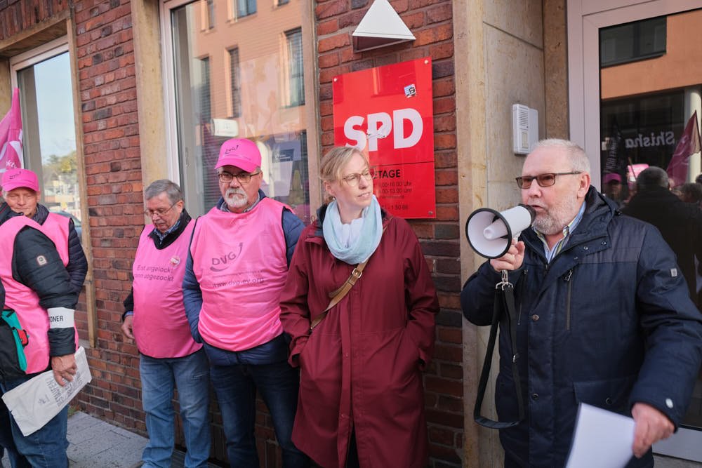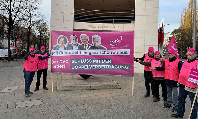 Natürlich hat er uns auch ganz klar gesagt, dass es unseriös sei, jetzt irgendetwas zu versprechen, aber wir machten ihm deutlich, dass nicht nur in dem Thema der Doppelverbeitragung von Direktversicherungen , sondern auch in der Diskrepanz zwischen Beamtenpensionen und gesetzlichen Renten, zwischen privaten Krankenversicherungen und der gesetzlichen Kranken-versicherung und anderem eine „sozialpolitische Zeitbombe“ tickt!