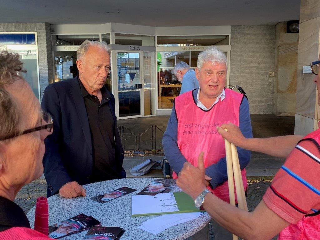 Von sich aus rief einige Wochen später die Mitarbeiterin, Frau Hotfilter, bei unserem RG-Sprecher Erwin ( Tischler ) an und bot einige Termine zur Auswahl an. Das ließen wir uns nicht zweimal sagen und so gingen Heinz ( Averbeck ) und Erwin zu Jonas Pohlmann zum Bürgergespräch.