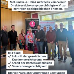 Für Lutz Brinkmann wr unser Kernthema neu. Heinz Averbeck Obmann der 3 Regionalgruppen, leitete mit Aufklärung ein.Es ging dann zur aktuellen Lage. Sanierungsvorschläge der Kommission zur Sanierung der GKV. Auf den Tisch kamen die Vorschläge der Gruppenarbeit von 6 Mitgliedern wie Transparenz der Zuordnung von Ausgaben schaffen bzw. nur Ausgaben, die auch von den Versicherten bezahlt wurden, alle in die Kassen einzahlen usw.. Und natürlich Abschaffung der Doppelverbeitragung und die Sonderbelastungen für freiwillig gesetzlich Versicherte (9-10 Regelung). Als Grundprinzip: Vermeidung aller nachgelagerten Abgaben auf Altersvorsorge. Als Leitlinie kam man sich näher:Eher Ausgaben senken als Abgaben erhöhen, denn die sind bereits hoch genug und genug jüngere Leistungsträger bzw. Firmen verlassen das Land.Aus DVG Sicht: Beide Politiker kommen aus der freien Wirtschaft und mögen „volksnäher“ sein, als Politiker die aus der Funktionärslinie kommen. Insofern hoffen wir vom DVG, dass bei Einbringen von Vorschlägen der Kommissionen für Rente und Gesundheit in die Politikinstitutionen unser Anliegen auf Verständnis trifft. Das Thema Rente kam aus Zeitgründen etwas zu kurz-aber warum nicht mal ein Wiedersehen, auch weil beide Herren Fachleute für Wohnungsbau sind, einem bekanntermaßen großen sozialen Problem. Bild in der Galerie untn rechts.